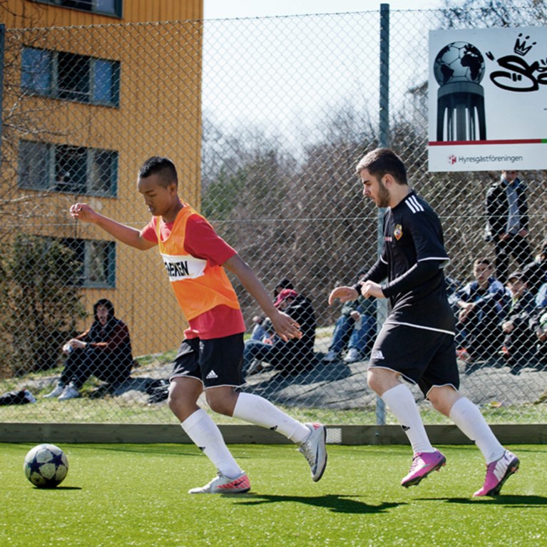 Fotbollsplanerna i Södra Biskopsgården var i väldigt dåligt skick. Chagdas och Rodrigo beslutade sig för att försöka göra något åt saken. Resultatet: en ny idrottsplats.