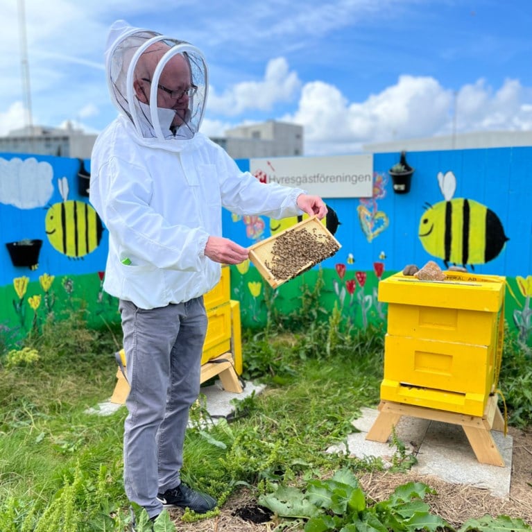Vill du ha inspiration och idéer på hur du som hyresgäst kan arrangera dig? Här möter vi Hyresgästföreningen i region norra Skåne med aktiva medlemmar som gått biodlarkurs.