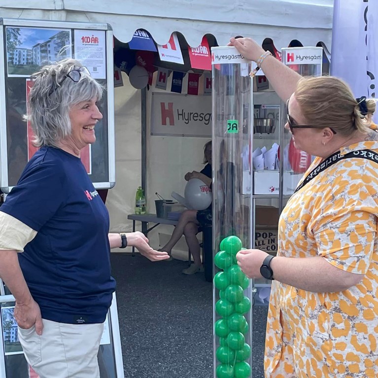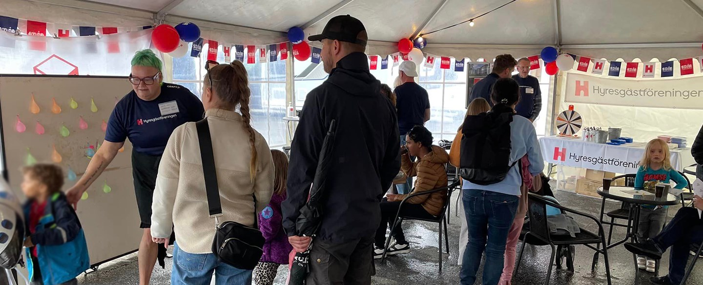 Varje dag fick besökarna möjlighet att ta ställning till ett påstående/fråga (svara ja/nej), som exempelvis ”Alla ska ha rätt till ett eget hem” och ”Hyresgäster ska ha råd att bo kvar efter en renovering”. Totalt tog 1163 personer ställning till våra påståenden under dagarna. För de yngre besökarna hade vi en uppskattad barntävling, där 777 barn glatt kastade pil på vattenballonger.