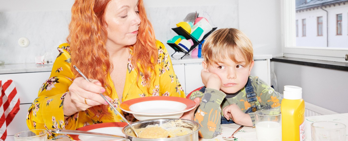 Ett barn och en vuxen äter soppa.