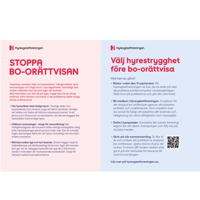 Flygblad: Stoppa bo-orättvisan