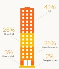 Drift - 43 procent: Här ingår el, vatten, värme, reparationer, skötsel med mera.